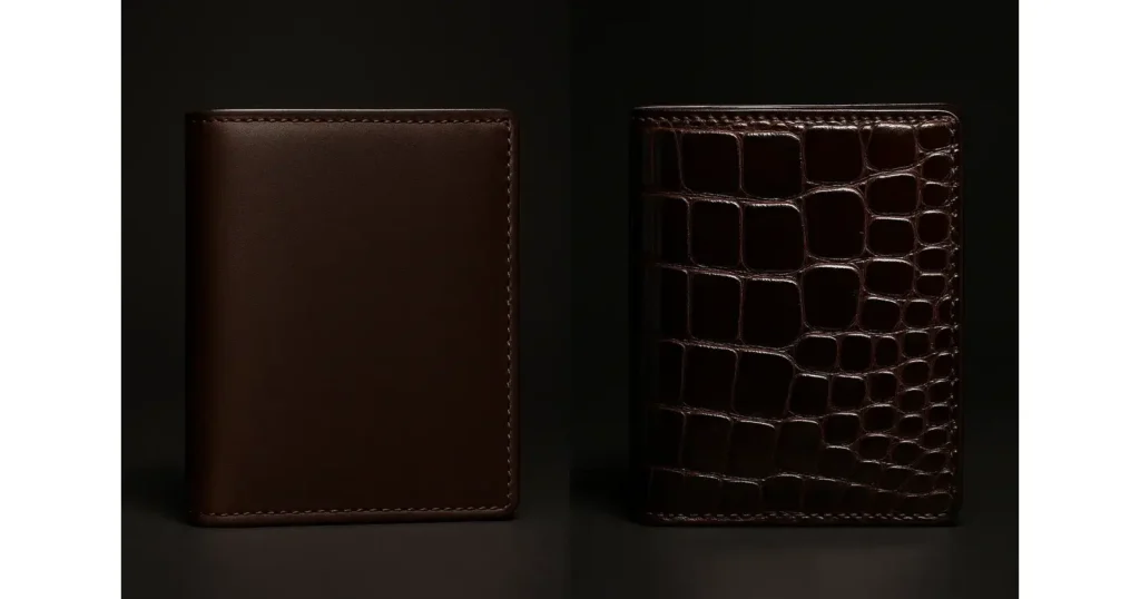 The characteristics of exotic leather set it apart. Each species has distinctive texture: large V-shaped scales on crocodile, small symmetrical tiles on alligator, raised quill bumps on ostrich, or tiny pearls on stingray. These patterns make exotic items instantly recognizable. In general, exotic skins often offer greater durability and resistance than cowhide.